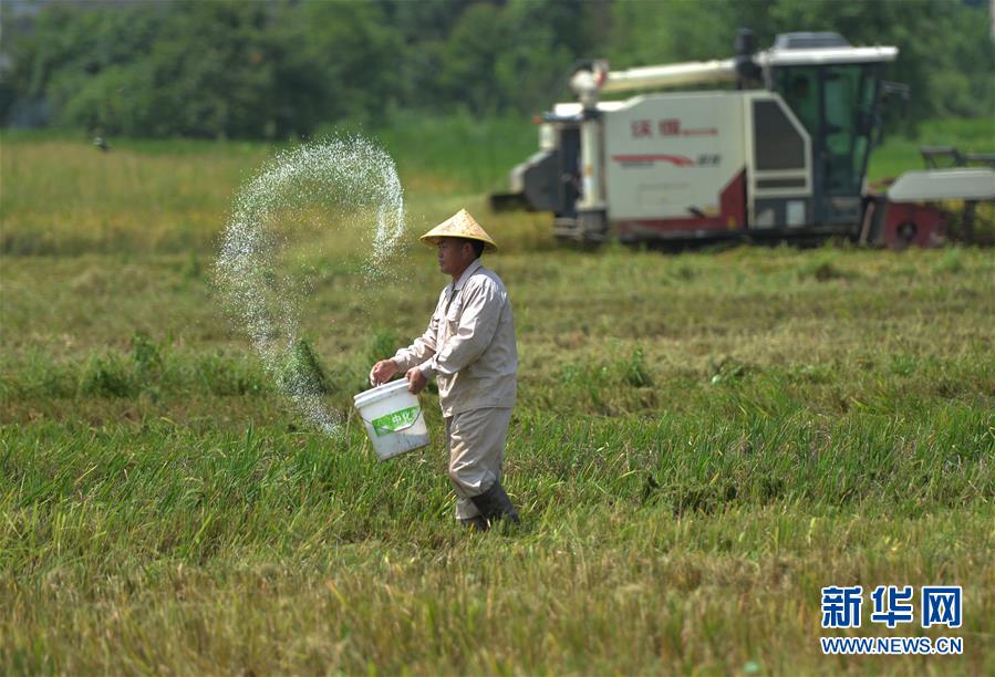 7月11日,村民在湖南省衡陽市衡陽縣臺源鎮(zhèn)臺九村收割后的稻田施肥,為種植晚稻做準(zhǔn)備。近日,湖南各地農(nóng)村陸續(xù)進(jìn)入“雙搶”季,農(nóng)民緊抓農(nóng)時,搶收搶種,力爭糧食穩(wěn)產(chǎn)豐收。新華社記者趙眾志攝