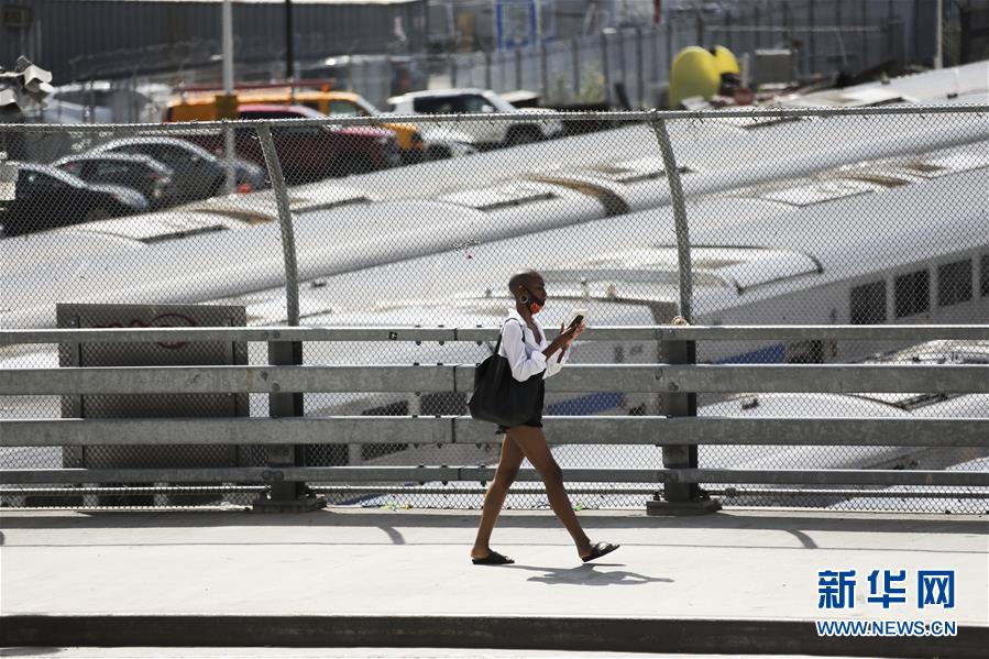7月14日,戴口罩的女子走在美國紐約街頭。美國約翰斯·霍普金斯大學(xué):截至北京時間15日6時34分,全球新冠確診病例達13258016例,死亡病例為576752例。美國是全球疫情最嚴(yán)重的國家,確診病例達3416222例,死亡病例為136319例。新華社記者 王迎 攝