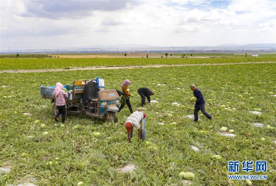 7月16日,在寧夏中衛(wèi)市香山鄉(xiāng)硒砂瓜萬畝示范基地,瓜農(nóng)在采收硒砂瓜。近日,寧夏中衛(wèi)市迎來硒砂瓜豐收季。硒砂瓜是中衛(wèi)市的特色農(nóng)產(chǎn)品,近年來,當?shù)夭扇〖夹g(shù)創(chuàng)新、規(guī)?;N植、休耕輪作等多項舉措,讓硒砂瓜種植成為當?shù)剞r(nóng)民增收致富的重要產(chǎn)業(yè)。據(jù)了解,今年中衛(wèi)市硒砂瓜種植面積為69.7萬畝。新華社記者楊植森攝