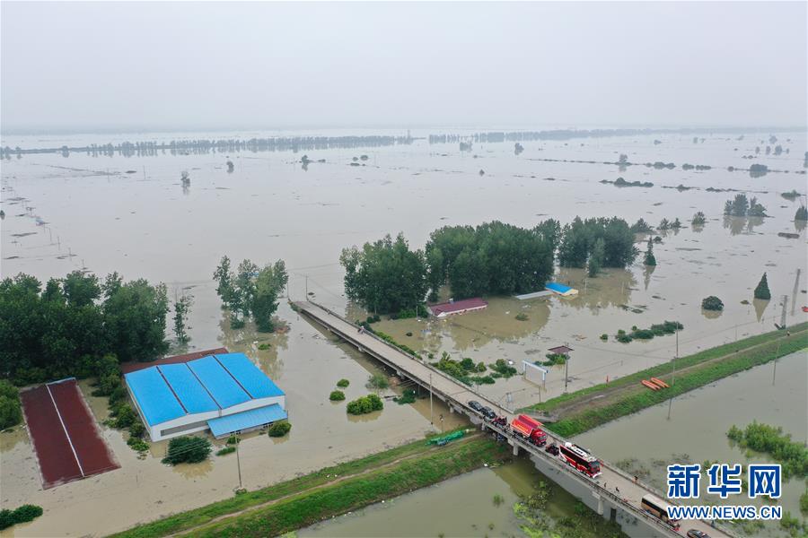 7月21日拍攝的水陽江對岸被淹的南京市高淳區(qū)陽江鎮(zhèn)勝利圩(無人機(jī)照片)。新華社記者季春鵬攝