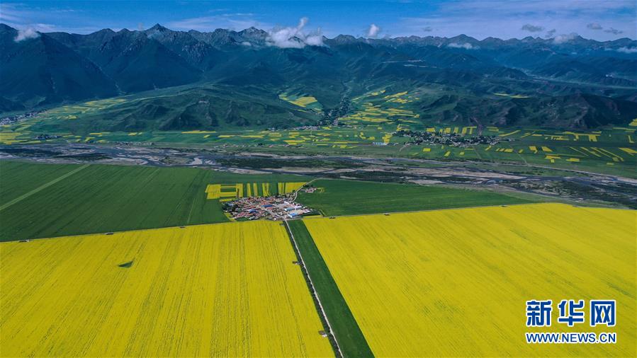 這是7月22日拍攝的門(mén)源回族自治縣的油菜花田(無(wú)人機(jī)照片)。時(shí)下正值高原油菜花競(jìng)相綻放的季節(jié),在青海省海北藏族自治州門(mén)源回族自治縣,金黃色的油菜花在高原藍(lán)天和云霧映襯下形成一幅壯麗畫(huà)卷,吸引游客前來(lái)觀賞。新華社記者 吳剛 攝