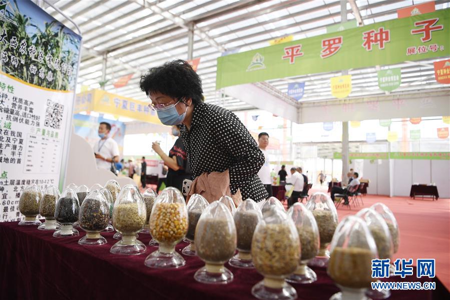 當日,第七屆寧夏種業(yè)博覽會在寧夏回族自治區(qū)石嘴山市平羅縣種子小鎮(zhèn)泰金種業(yè)產(chǎn)業(yè)園開幕。本屆種業(yè)博覽會有來自國內(nèi)外150家種子企業(yè)的8大類4000個品種參展,為制種產(chǎn)業(yè)發(fā)展、農(nóng)戶科學選種搭建平臺,讓小種子為鄉(xiāng)村振興帶來新動力。新華社記者 王鵬 攝