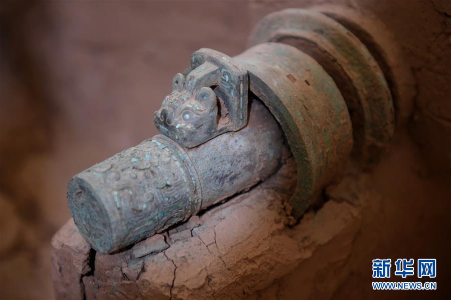 這是7月30日在陜西省考古研究院涇渭基地拍攝的西周晚期青銅輪牙馬車車轄。新華社記者李一博攝
