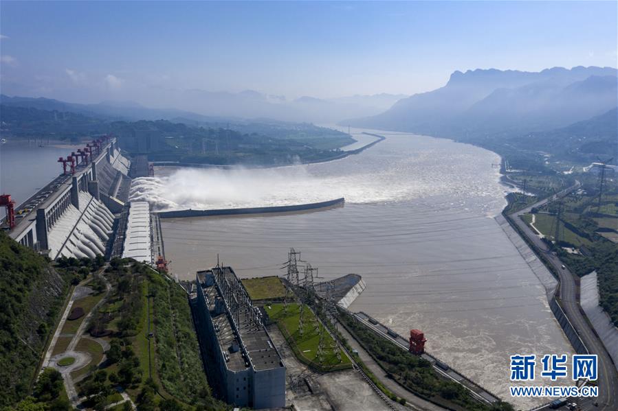 8月2日,江水通過三峽大壩下泄(無人機(jī)照片)。據(jù)水利部長(zhǎng)江水利委員會(huì)消息,7月以來,長(zhǎng)江流域共出現(xiàn)6次強(qiáng)降雨過程,長(zhǎng)江上游先后發(fā)生3次編號(hào)洪水。為減輕中下游防洪壓力,包括三峽、葛洲壩在內(nèi)的長(zhǎng)江中上游水庫群共攔洪300多億立方米。新華社記者杜華舉攝