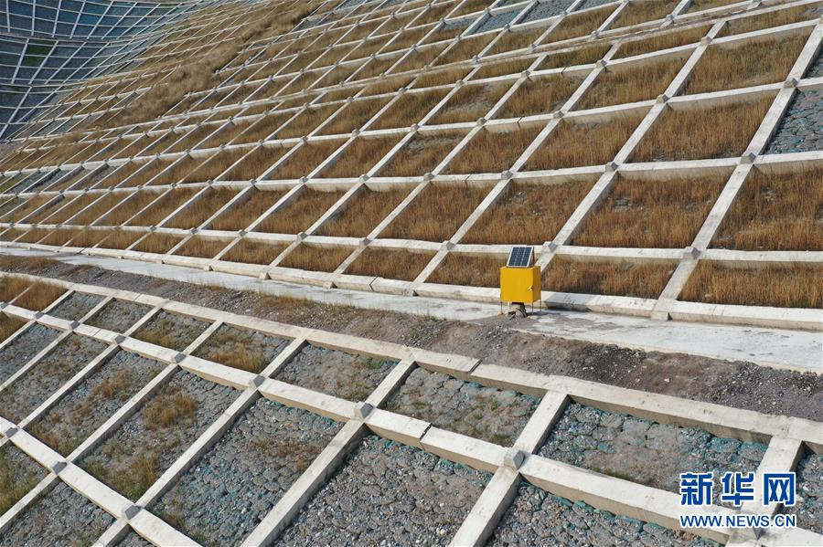 這是7月15日在舟曲縣南峪鄉(xiāng)江頂崖山體滑坡治理點拍攝的一處技術(shù)監(jiān)測設(shè)備(無人機照片)。新華社記者杜哲宇攝