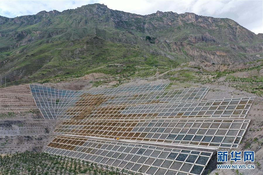 這是7月15日拍攝的舟曲縣南峪鄉(xiāng)江頂崖山體滑坡治理點(無人機照片)。新華社記者杜哲宇攝