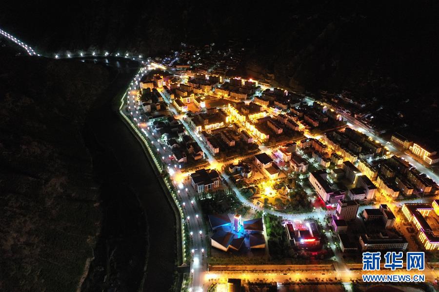 這是7月15日拍攝的舟曲縣新縣城夜景(無人機(jī)照片)。新華社記者杜哲宇攝