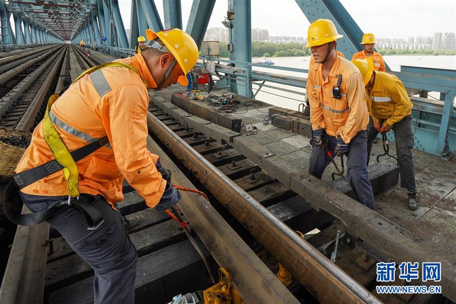 連日來,江蘇省南京市持續(xù)高溫天氣,在中國鐵路上海局集團有限公司南京橋工段南京大橋車間,近80名橋隧工不畏高溫酷暑,堅守崗位,確保暑運列車的安全運行。戴著安全帽,穿著防護服,橋隧工們趁著沒有列車運行的“天窗時間”,每天用腳步“丈量”大橋,保障長江大橋鐵路橋運輸暢通、安全。