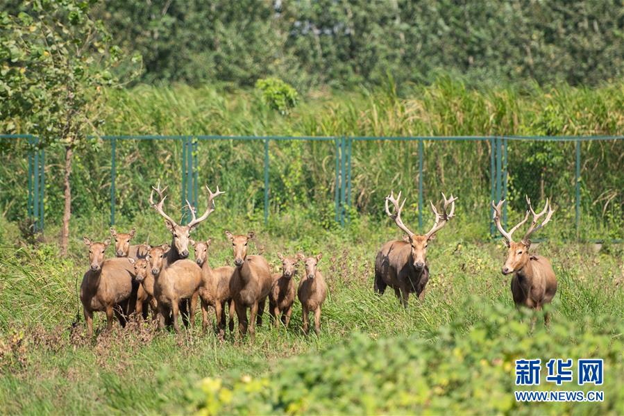 這是8月7日在東洞庭湖麋鹿和鳥類救治避難中心拍攝的麋鹿。位于湖南省岳陽市的東洞庭湖麋鹿和鳥類救治避難中心成立于2016年9月,占地400余畝,中心自建成后就承擔(dān)起東洞庭湖區(qū)域全部麋鹿的救援、醫(yī)治、康復(fù)和喂養(yǎng)任務(wù)。目前該中心共有14只麋鹿正在接受救助。新華社記者陳思汗攝