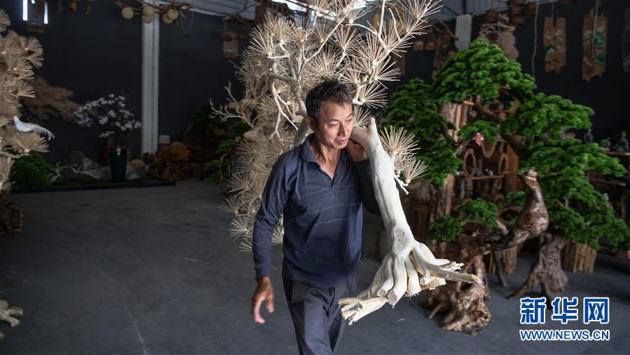 8月7日,一名工人在永??h永安鄉(xiāng)根雕工藝品就業(yè)扶貧車間搬運根雕半成品。2017年以來,廣西桂林市永福縣永安鄉(xiāng)通過幫扶返鄉(xiāng)青年創(chuàng)業(yè)的方式,建立起根雕工藝品就業(yè)扶貧車間,組織貧困群眾進車間務工學藝,把當?shù)刎S富的朽木和柑橘樹根枝資源利用起來,加工成盆景、茶桌、吊燈等根雕工藝品,不僅幫助貧困群眾在家門口掌握一技之長,還讓他們在脫貧摘帽后實現(xiàn)穩(wěn)定增收。新華社記者張愛林攝
