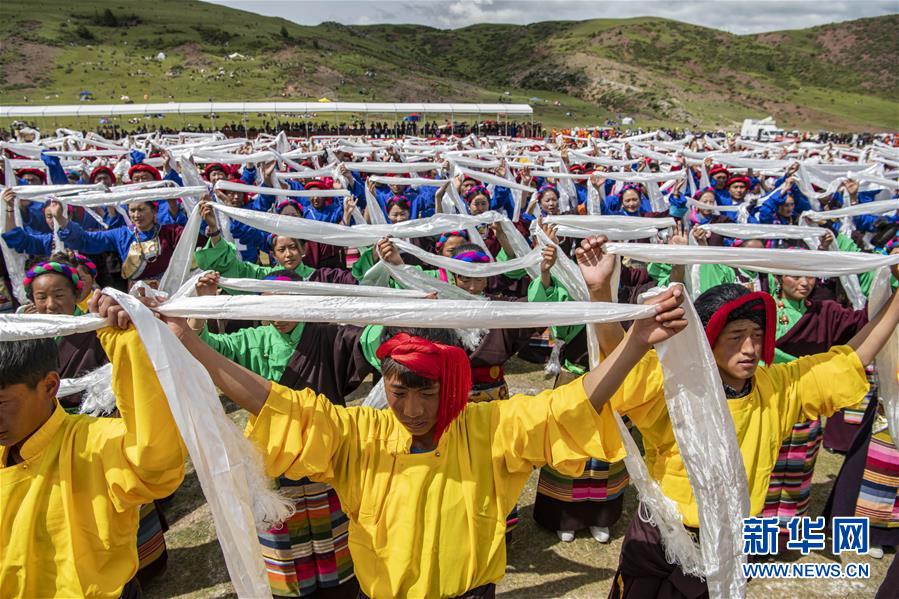 8月7日,在西藏首屆弦子舞展演現(xiàn)場,演出人員在表演弦子舞。當(dāng)日,西藏首屆弦子舞展演在昌都市芒康縣舉行。眾多演員同臺(tái)獻(xiàn)藝,表演國家級(jí)非物質(zhì)文化遺產(chǎn)弦子舞,吸引西藏各地的群眾前來觀看。新華社記者孫非攝