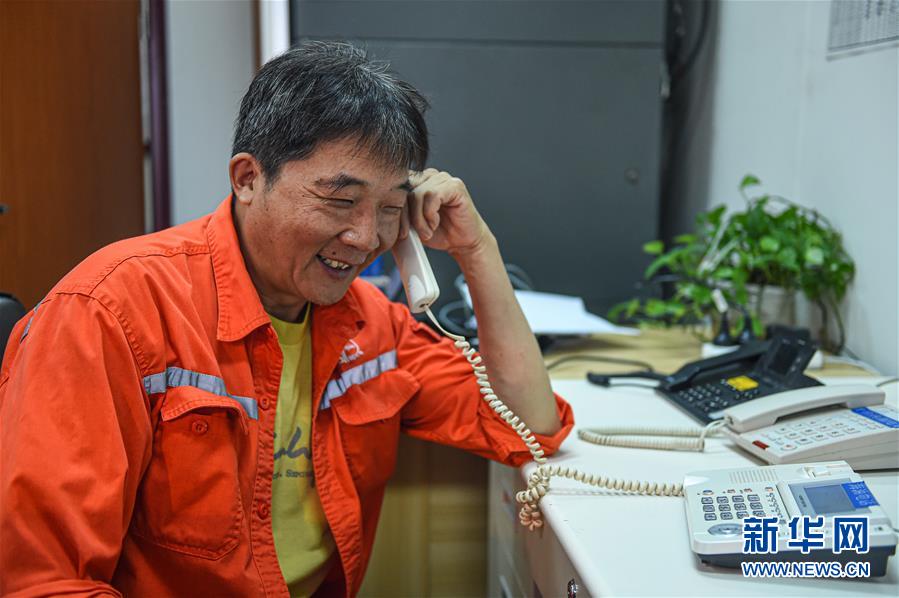 7月27日,在位于南海北部海域的勘探三號鉆井平臺上,一名工人通過衛(wèi)星電話與家人聯(lián)絡(luò)。鉆井平臺上沒有手機信號,這是鉆井工人與家人聯(lián)絡(luò)的重要渠道。新華社記者蒲曉旭攝