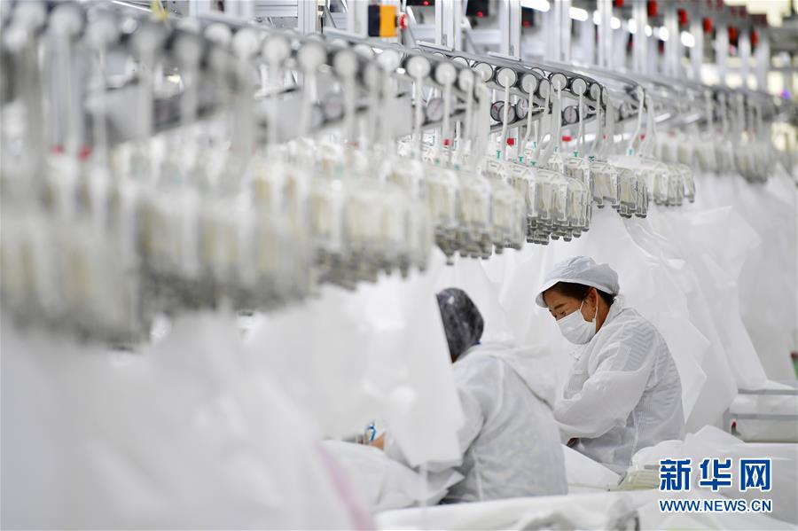 8月9日,甘肅拓奇扶貧車間的員工在服裝加工生產(chǎn)線上作業(yè)。甘肅拓奇扶貧車間位于甘肅省臨夏回族自治州積石山縣,是依托東西部扶貧協(xié)作平臺引進的服裝加工企業(yè)。扶貧車間建成投產(chǎn)以來帶動就業(yè)近300人,其中吸納建檔立卡貧困戶就業(yè)110人,實現(xiàn)了貧困群眾就地就近就業(yè)增收的目的,為助推當?shù)孛撠毠约翱h域經(jīng)濟發(fā)展發(fā)揮了重要作用。新華社記者陳斌攝。