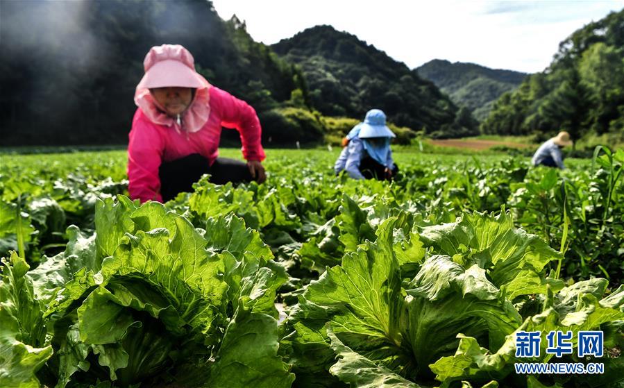 陜西寶雞市太白縣咀頭鎮(zhèn)塘口村的村民在菜地里勞作(7月4日攝)。近年來,地處秦嶺腹地的陜西太白縣利用海拔高、晝夜溫差大等條件發(fā)展高山反季節(jié)無公害蔬菜種植。目前全縣85%的群眾從事蔬菜生產(chǎn),種植的反季節(jié)高山蔬菜涵蓋28大類390余種,暢銷全國(guó)。新華社記者劉瀟攝。