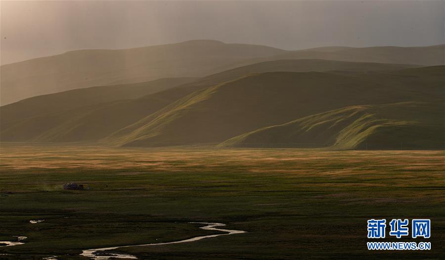 夕照下的泥拉壩濕地一角(8月9日攝)。新華社記者江宏景攝。