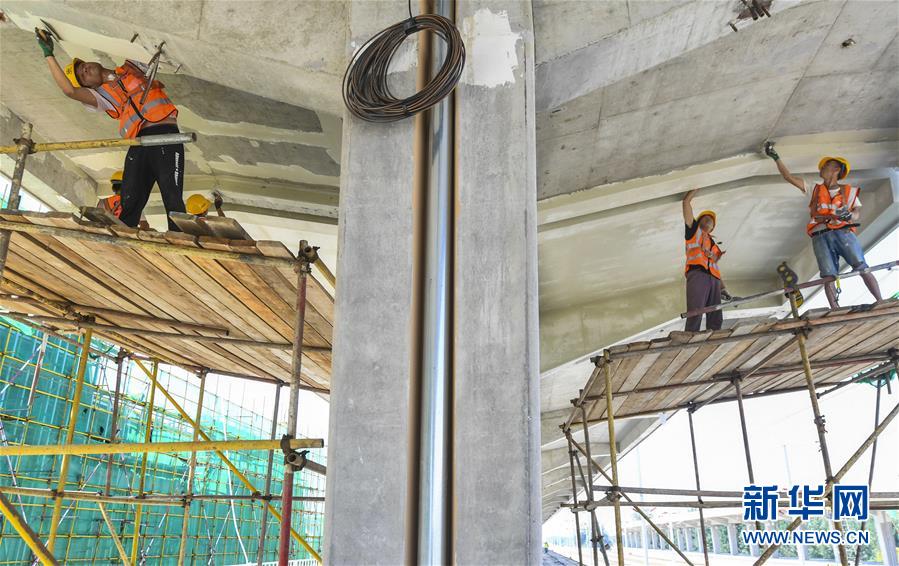8月10日,工人在京雄城際鐵路霸州北站建設(shè)工地為雨棚梁底抹膩?zhàn)?。京雄城際鐵路霸州北站站臺(tái)雨棚混凝土結(jié)構(gòu)施工日前全部完成,目前霸州北站已全面轉(zhuǎn)入裝飾裝修和機(jī)電安裝階段,預(yù)計(jì)2020年底投入使用。京雄城際鐵路是連接北京市區(qū)、大興機(jī)場和雄安新區(qū)的重要干線。建成后,將進(jìn)一步完善京津冀區(qū)域高速鐵路網(wǎng)結(jié)構(gòu),便利沿線群眾出行,對于推動(dòng)京津冀協(xié)同發(fā)展和支撐建設(shè)雄安新區(qū)具有重要意義。新華社記者李曉果攝。