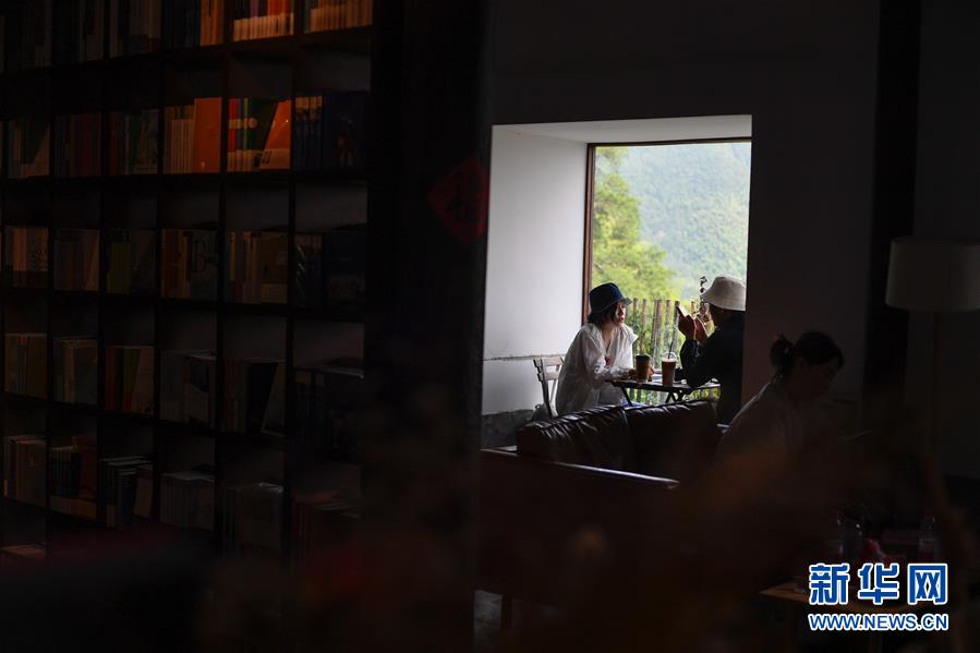 游客在浙江省麗水市松陽縣四都鄉(xiāng)陳家鋪村的先鋒書店平民書局休閑(7月17日攝)。新華社記者黃宗治攝。