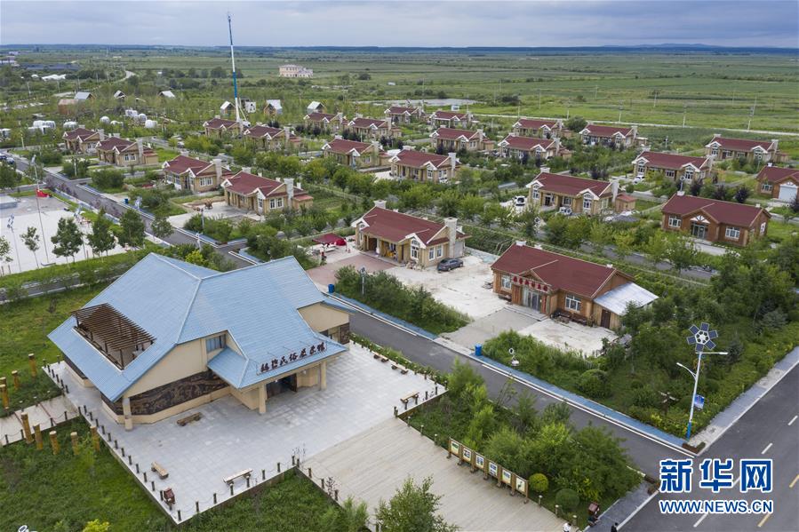 這是8月9日拍攝的抓吉赫哲族村(無(wú)人機(jī)照片)。抓吉赫哲族村面積1.3平方公里,是赫哲族“三鄉(xiāng)五村”聚居地之一。近年來,抓吉赫哲族村在撫遠(yuǎn)市“烏蘇里船歌風(fēng)光帶”框架下,大力發(fā)展民俗文化旅游產(chǎn)業(yè)。新華社記者謝劍飛攝。