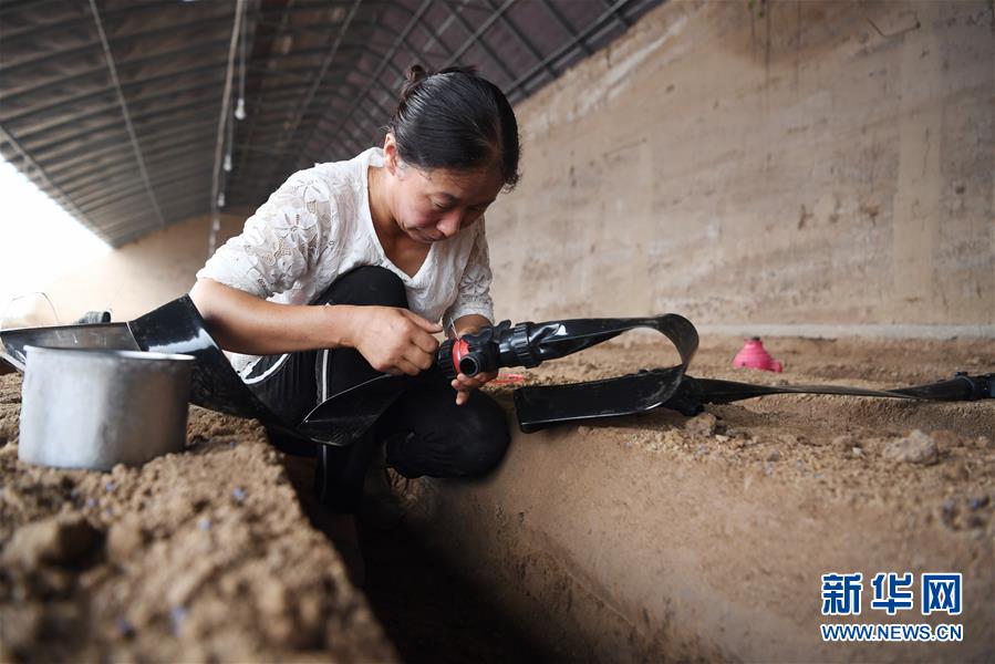 8月11日,在甘肅省臨夏回族自治州臨夏縣先鋒鄉(xiāng)前韓村,搬遷戶朱懷蘭在日光溫室內(nèi)勞作。近年來,甘肅省臨夏回族自治州臨夏縣把易地扶貧搬遷作為打贏脫貧攻堅戰(zhàn)的重要任務,科學推進易地扶貧搬遷和脫貧攻堅工作。為了讓搬遷群眾能夠安居樂業(yè),當?shù)卣⒅胤龀趾罄m(xù)產(chǎn)業(yè)發(fā)展,引導搬遷群眾發(fā)展日光溫室、布鞋加工、觀光農(nóng)業(yè)、特色種養(yǎng)殖等產(chǎn)業(yè),幫助搬遷群眾實現(xiàn)就近就業(yè)、拓寬增收渠道,確保搬遷群眾“搬得出、穩(wěn)得住、有事做、能致富”。新華社記者陳斌攝