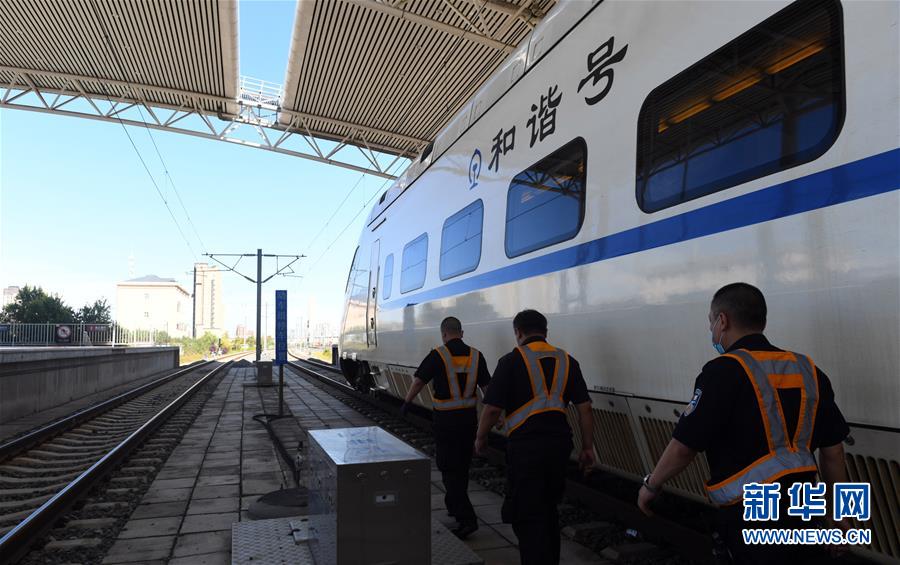 8月12日,長春火車站客運車間上水班組趕往下一個作業(yè)站臺。新華社記者 林宏 攝