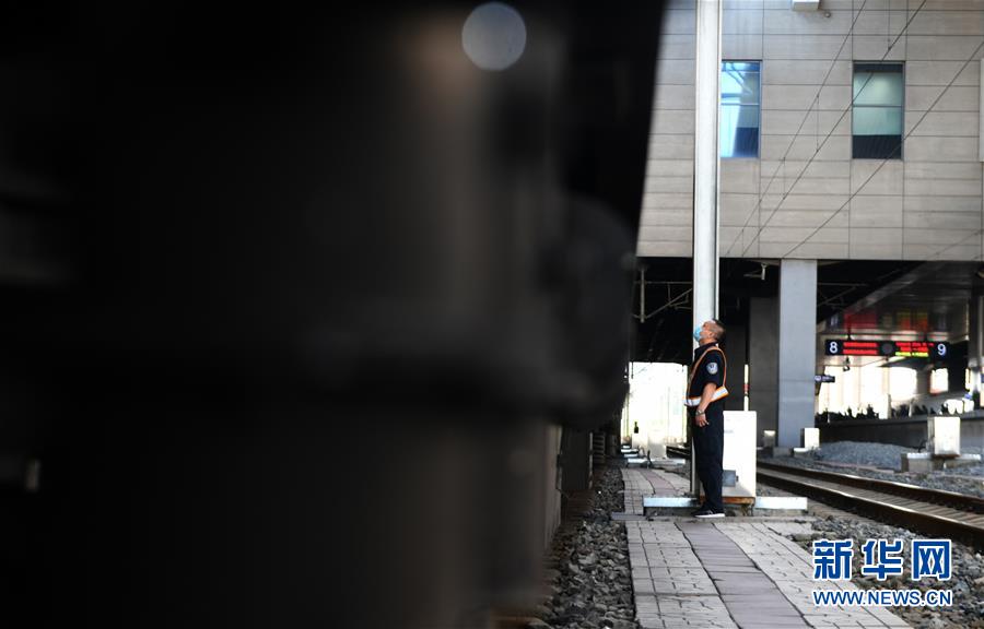 8月12日,長春火車站客運(yùn)車間上水工常明結(jié)束上水工作后等候列車出站。新華社記者 林宏 攝