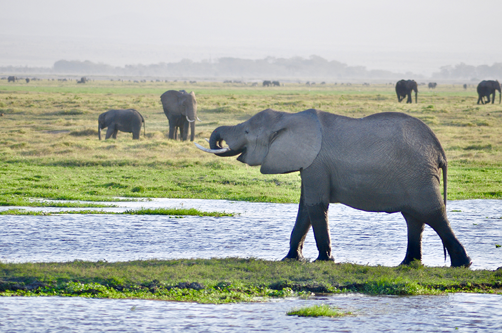 肯尼亞東南部,與坦桑尼亞接壤的安博賽利國家公園,距內(nèi)羅畢240公里,因水草豐美而成為野生非洲大象的樂園。