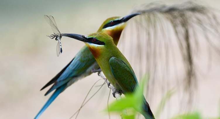 近日,不少栗喉蜂虎來到海南省??谑兄卜敝常瑩?jù)??诋z榃濕地研究所工作人員統(tǒng)計,目前來到海口的栗喉蜂虎已有近200只。