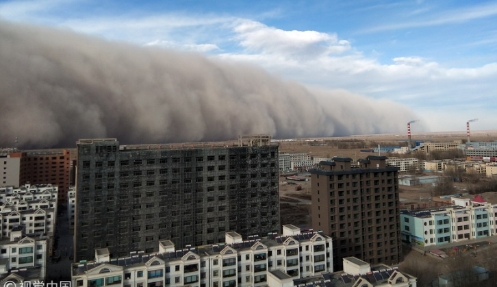 甘肅張掖沙塵暴來襲 “沙墻”高達(dá)上百米