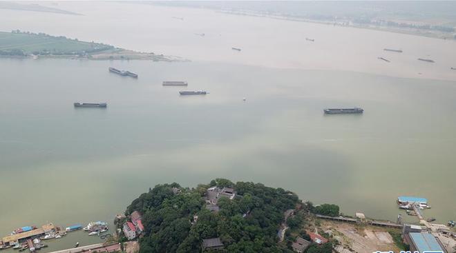 長(zhǎng)江鄱陽(yáng)湖交匯 形成兩色美景
