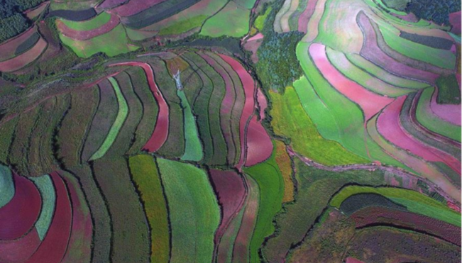 入秋以來(lái),位于云南省昆明市東川區(qū)的紅土地五彩斑斕,絢麗多姿。