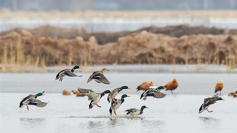 近日,隨著天氣回暖,內(nèi)蒙古自治區(qū)準(zhǔn)格爾旗大路鎮(zhèn)的黃河淺灘迎來(lái)大批候鳥(niǎo)。