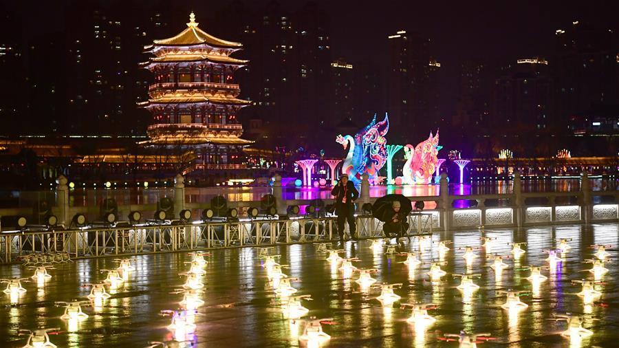 春節(jié)假期,河北省邯鄲市邯山區(qū)舉辦的“絲綢之路”迎春燈展吸引眾多游客前來觀賞游玩。
