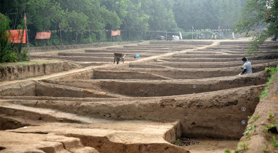 7月28日,考古工作者在對濟南梁王遺址內(nèi)戰(zhàn)國時期古城遺址進行考古發(fā)掘。