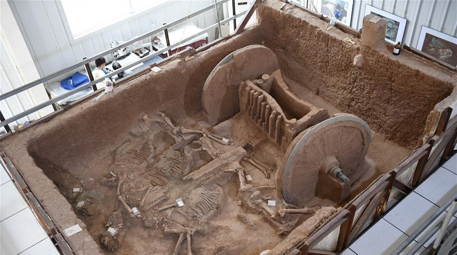 陜西保護復(fù)原2800年前西周青銅輪牙馬車
