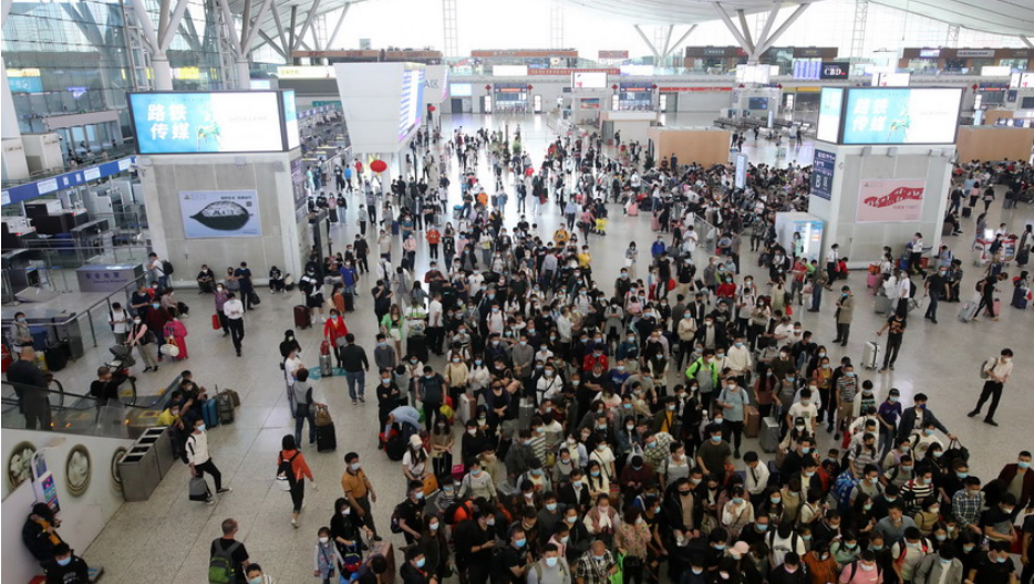2020年3月28日,廣東深圳,周末的深圳北站客流量增大。