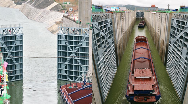 當日,廣西大藤峽水利樞紐工程船閘試通航啟動,預(yù)計一年后可正式通航。