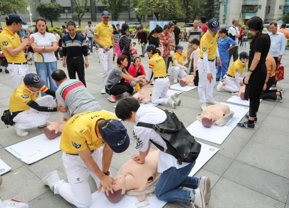 深圳市賽場救護(hù)隊的專業(yè)人員在現(xiàn)場為蓮花一村的社區(qū)居民普及了大眾急救技能,并指導(dǎo)大家進(jìn)行模擬心肺復(fù)蘇的演練,中老年朋友則享受了免費(fèi)的體質(zhì)檢測服務(wù)。