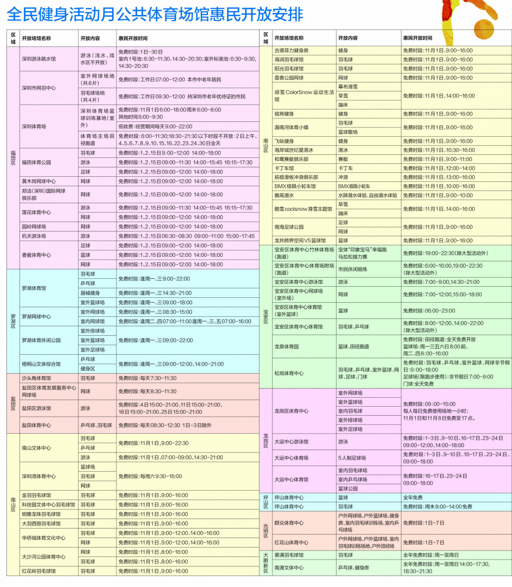 全市各區(qū)的公共體育場館、體育設(shè)施和學校體育場地也將免費或優(yōu)惠向市民開放,以滿足廣大群眾的健身需求,豐富群眾體育文化生活,吸引更多人群參加健身活動。值得注意的是,在今年免費開放的體育場館中,不但有市區(qū)級建設(shè)的大型體育中心、體育館,更有如機關(guān)游泳館、華僑城體育中心、古德菲力健身房等幾十余家社會體育場館,政府主導(dǎo),社會力量融入,全民健身范圍得以大幅擴大。