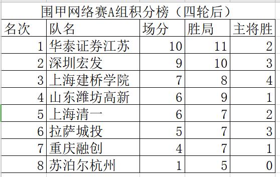 附1:2020年“華為手機(jī)杯”中國圍棋男子甲級(jí)隊(duì)聯(lián)賽網(wǎng)絡(luò)熱身賽AB兩組積分排名表