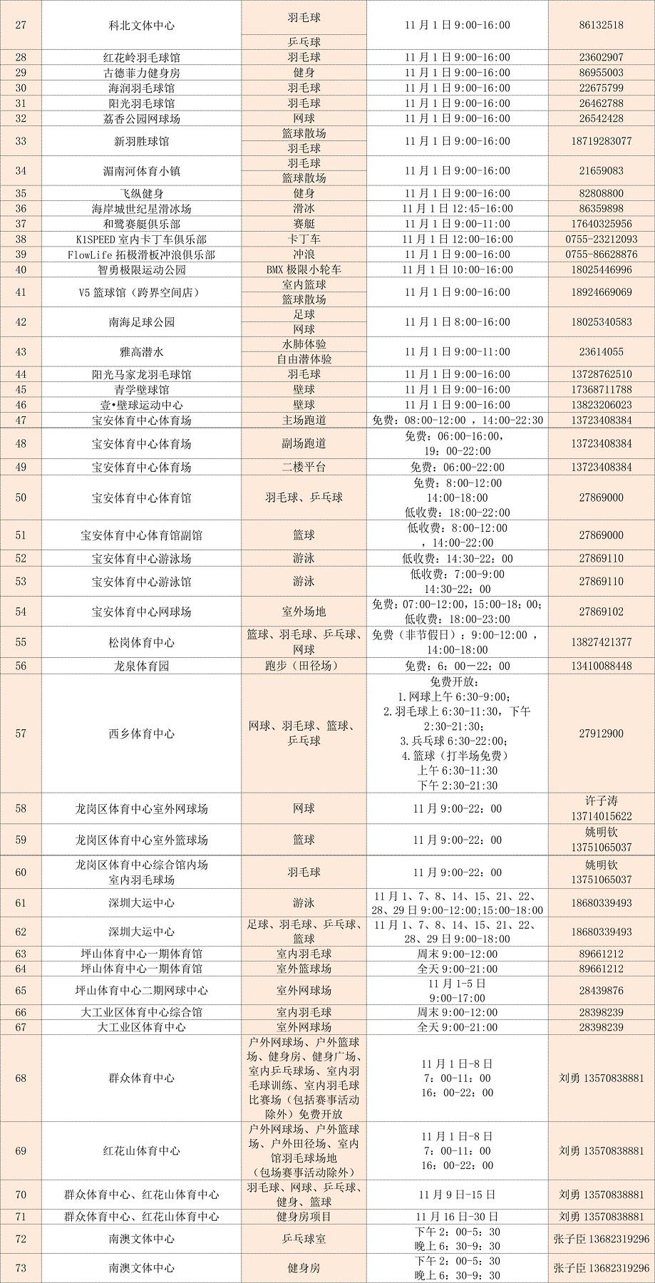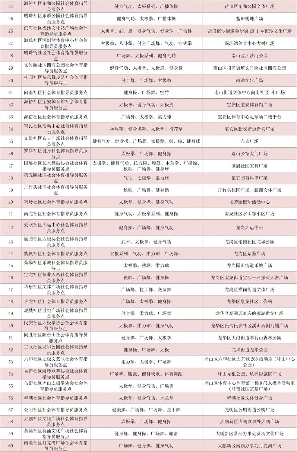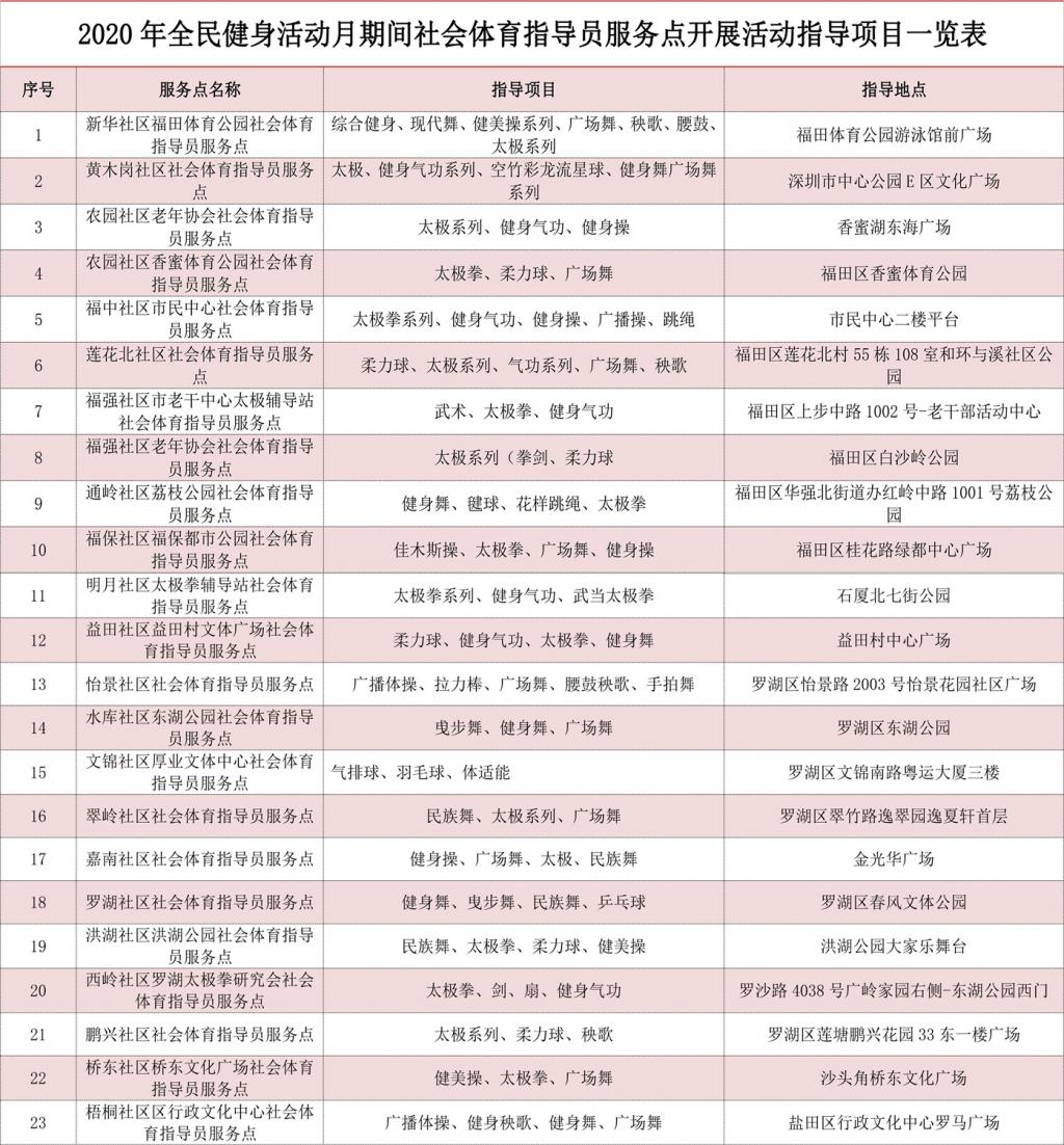 2020深圳全民健身活動月社會體育指導(dǎo)員服務(wù)點表: