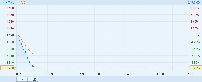 智通財(cái)經(jīng)APP獲悉,今日早盤A股鋼鐵板塊低開低走,現(xiàn)鋼鐵板塊跌超3%,馬鋼股份(600808)跌逾6%,受此影響,港股馬鞍山鋼鐵股份(00323)也跟隨下跌,截至10時02分,跌8.25%,報(bào)價3.78港元,成交額9244萬。