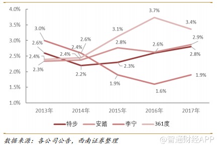 其邏輯之一是,特步在2015年開啟變革之后,從品牌定位、產(chǎn)品、渠道、運營四方面進行了全方位變革,公司從一家產(chǎn)品公司轉型為一家品牌公司。2017年末,公司用1.2億元一次性回購2015年前生產(chǎn)的產(chǎn)品,徹底清除歷史包袱,為業(yè)績反轉奠定基礎。