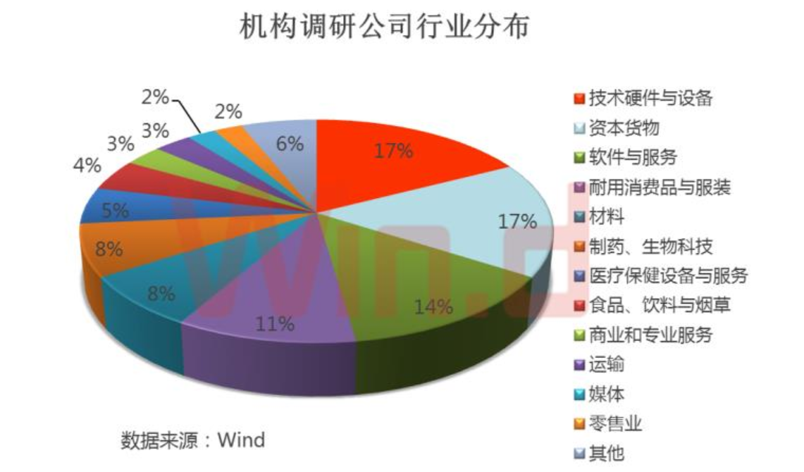 Wind統(tǒng)計(jì)顯示,10月22日以來,市場活躍度明顯提升,機(jī)構(gòu)也加大了對上市公司的拜訪頻率,有240多家公司接受了機(jī)構(gòu)調(diào)研,其中,有135家公司調(diào)研機(jī)構(gòu)數(shù)超過5家,從相關(guān)公司行業(yè)分布來看,技術(shù)硬件與設(shè)備最多有23家,占比17%,其次是資本貨物有22家,占比17%、軟件與服務(wù)、耐用消費(fèi)品與服裝、材料行業(yè)公司數(shù)亦較多。隨著行情的轉(zhuǎn)暖,機(jī)構(gòu)對科技行業(yè)的關(guān)注度逐漸提升。