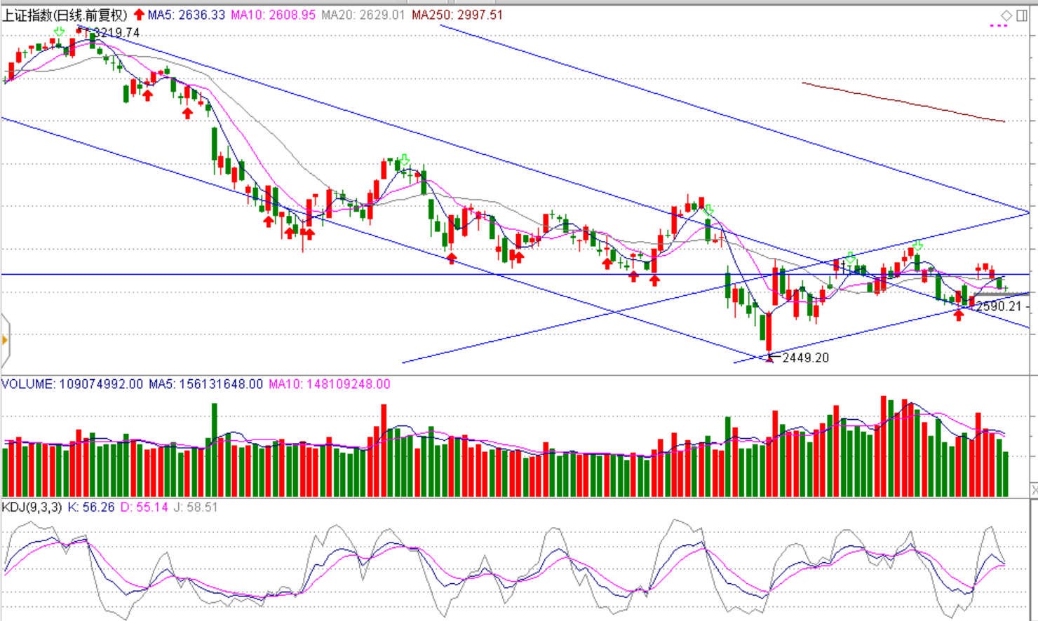 經(jīng)過持續(xù)幾天縮量調(diào)整,短期調(diào)整空間有限,窒息量結(jié)構(gòu)后如配合成交量放大則視為短期企穩(wěn)信號,關(guān)注滬綜指2575點、創(chuàng)業(yè)板1326點一線支撐,預計本周企穩(wěn)回升。