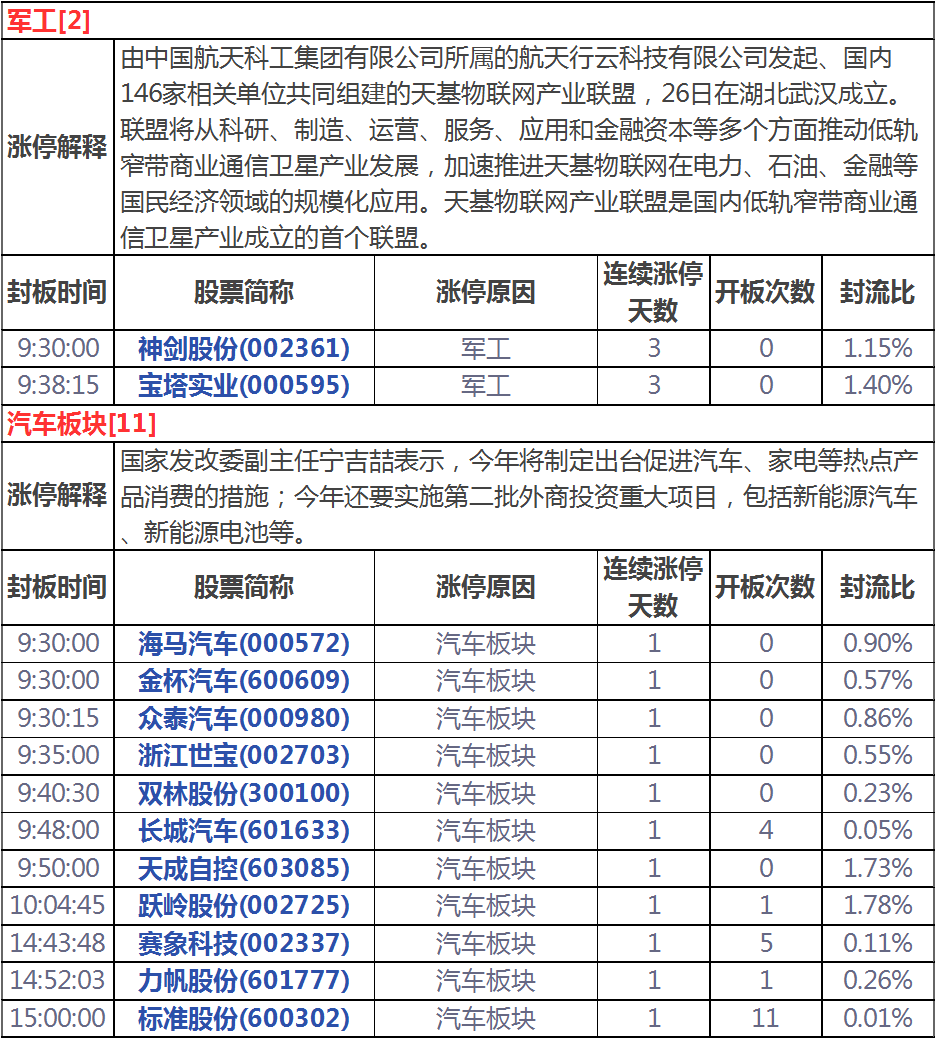 今天漲停家數(shù)較上一交易日增加,兩市64家漲停,跌停2家。成交量方面,滬市成交1608億元,深市成交2184億元,兩市總成交額約為3792元,較上一交易日放量794億元。盤(pán)面上,家電、汽車、無(wú)人駕駛等板塊漲幅居前,軍工、養(yǎng)殖業(yè)、天然氣等板塊跌幅居前。
