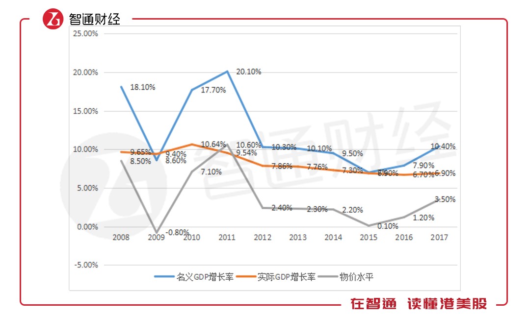 但考慮到物價(jià)水平的變化,此時(shí)農(nóng)村的消費(fèi)水平并不能代表購(gòu)買力水平,智通財(cái)經(jīng)APP以實(shí)際GDP增長(zhǎng)水平和名義GDP增長(zhǎng)水平測(cè)算每一年的物價(jià)水平(物價(jià)水平=名義GDP增長(zhǎng)水平-實(shí)際GDP增長(zhǎng)水平),以下為測(cè)算圖表: