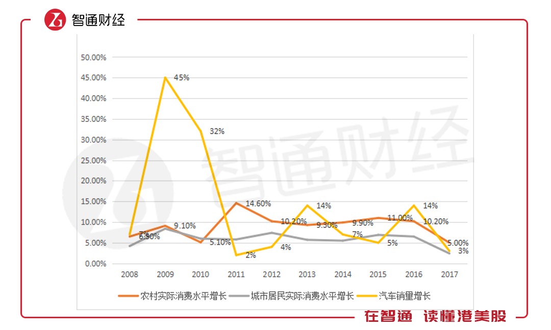 以上數(shù)據(jù)說(shuō)明,農(nóng)村市場(chǎng)并不樂(lè)觀,一方面是實(shí)際的購(gòu)買力弱,遠(yuǎn)低于2007年的城市消費(fèi)水平,一方面農(nóng)村及城市消費(fèi)水平增長(zhǎng)均下滑,若經(jīng)濟(jì)增長(zhǎng)壓力持續(xù)存在,未來(lái)可能錄得負(fù)增長(zhǎng),汽車銷量將難以反彈。