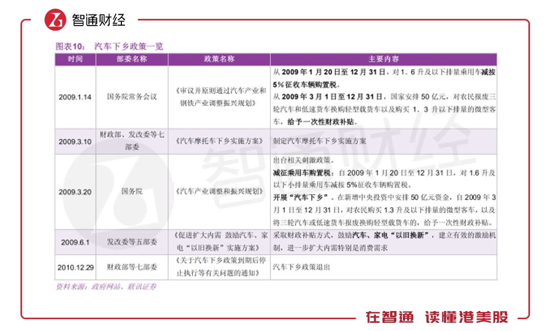 智通財(cái)經(jīng)APP了解到,此次汽車下鄉(xiāng)并非首次,我國(guó)曾于2009年開(kāi)展的汽車下鄉(xiāng),當(dāng)時(shí)新增中央投資安排50億資金,對(duì)農(nóng)民購(gòu)買的指定車型進(jìn)行補(bǔ)貼,但該項(xiàng)政策于2010年退出舞臺(tái)。2015年因汽車銷量萎靡,政策再次出馬,當(dāng)時(shí)主要以減征車輛購(gòu)置稅為主,但并非汽車下鄉(xiāng)措施。