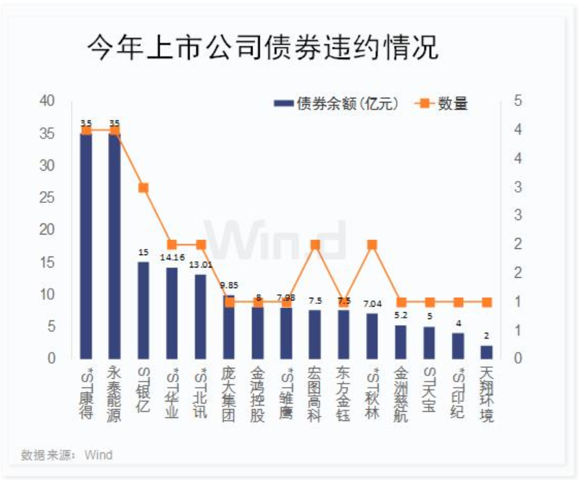 Wind數(shù)據(jù)顯示,今年以來(lái),兩市共有15家A股上市公司累計(jì)27只債券違約,涉及債券余額總計(jì)176.24億元。