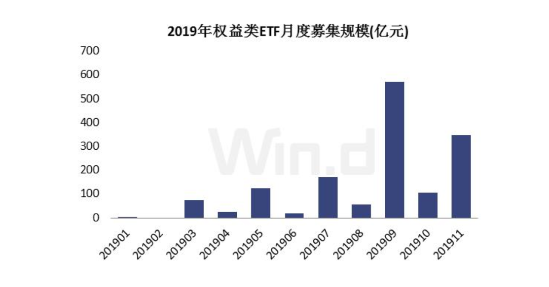 月度數(shù)據(jù)來看,今年9月權益類ETF募集規(guī)模最大,達571.98億元;其次就是11月,目前11月尚未過半,權益類ETF募集規(guī)模已達348.84億元。